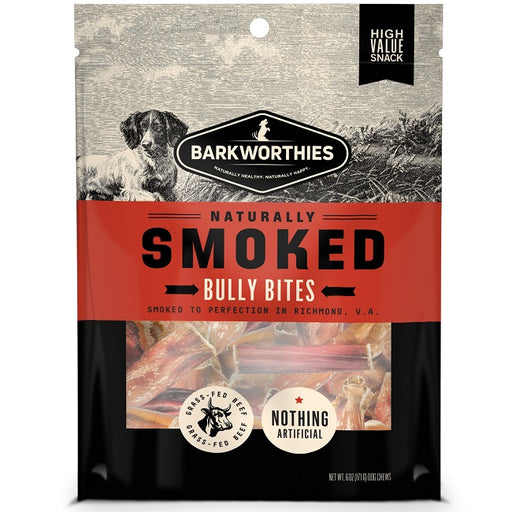 BarkworthiesThis naturally smoked chew will keep your dog occupied for hours with the sweet aroma of smoked meats. The 6” Smoked Bully Stick is all natural bee...
