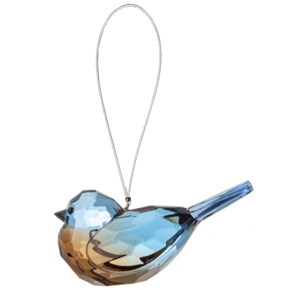 Lifelike faceted acrylic Eastern Bluebird suncatcher ornament.