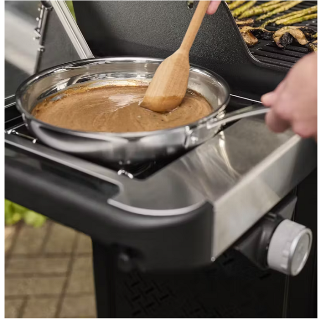 - Side burner provides extra cooking space for sauces and sides