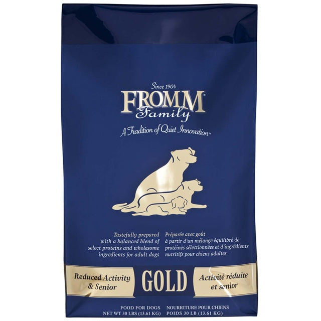 Fromm Family Reduced Activity & Senior Gold Food for Dogs is formulated to provide your less active adult dog or senior dog with complete and balanced nutrition.
