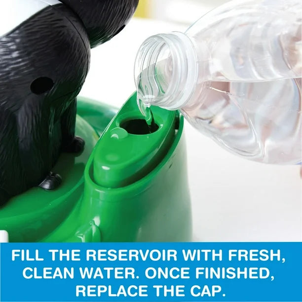 - PREPARE FOR A PLAYFUL SPLASH: Fill the hidden water reservoir & press the skunk's tail down to reset the game. Take turns rolling the die to discover how many flowers you must press.